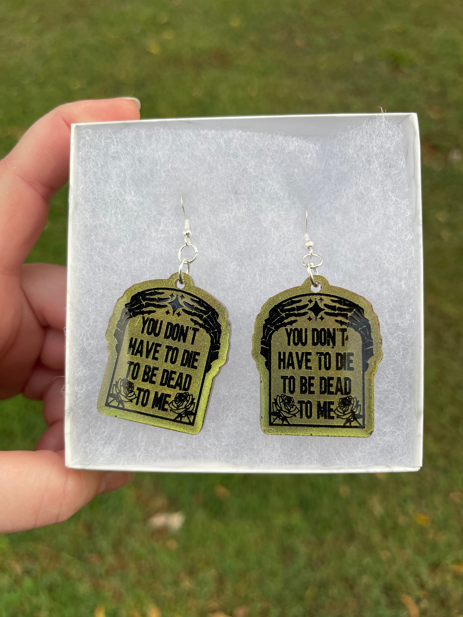 Gold / Green You Don’t Have to Die to be Dead to Me Earrings